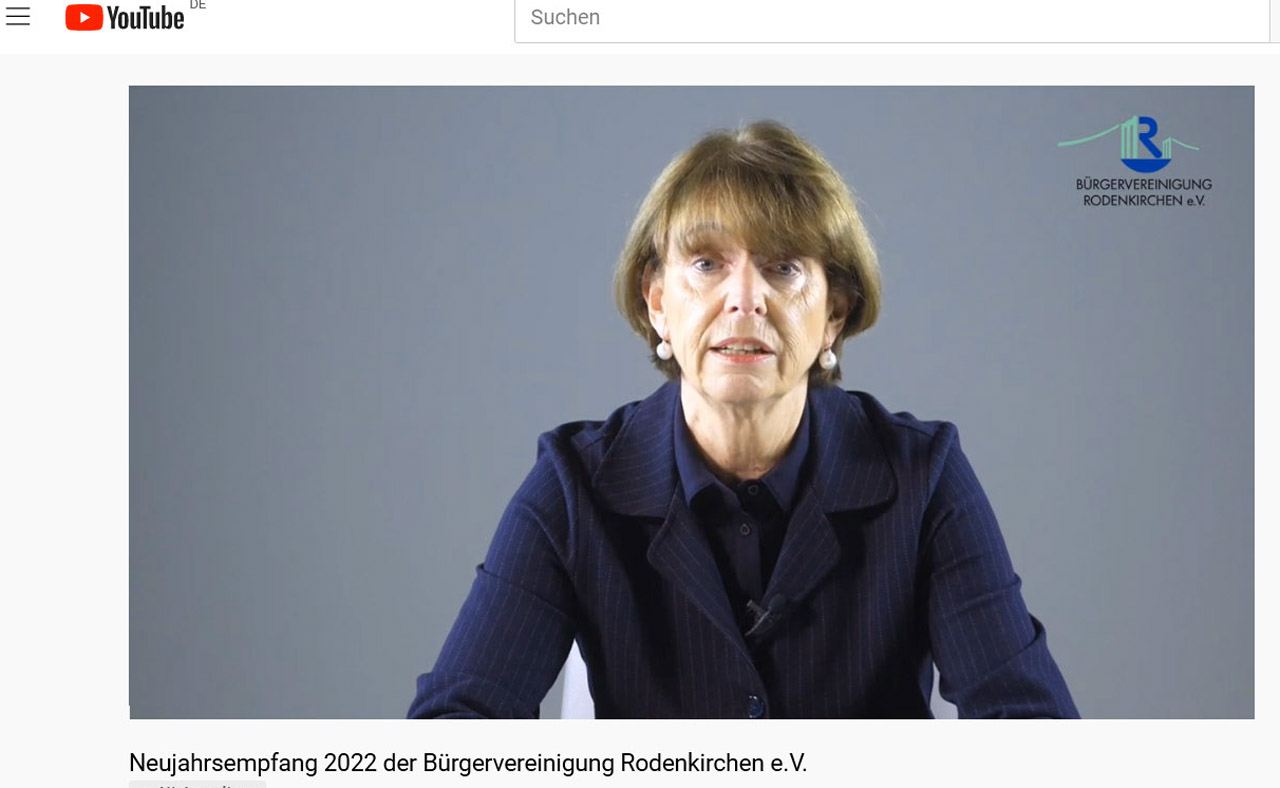 Ursprünglich hatte die Bürgervereinigung Rodenkirchen geplant, ihren traditionellen Neujahrsempfang mit dem Vorstand und einzelnen Gastredenden in YouTube als Livestream zu übertragen. „Auf den persönlichen Austausch und die interessanten Gespräche mit unseren Gästen nun zum zweiten Mal verzichten zu müssen, macht es uns daher doppelt schwer. Aber angesichts der notwendigen Kontaktbeschränkungen mussten wir auf die ursprünglich geplante Live-Übertragung im kleinen Kreis verzichten und auf das Medium Video ausweichen“, sagt Behrendt. Der Vorstand der Bürgervereinigung Rodenkirchen hofft, dass sich die Corona-Pandemie-Lage bald bessert und wird dann zu einem sommerlichen Empfang einladen.